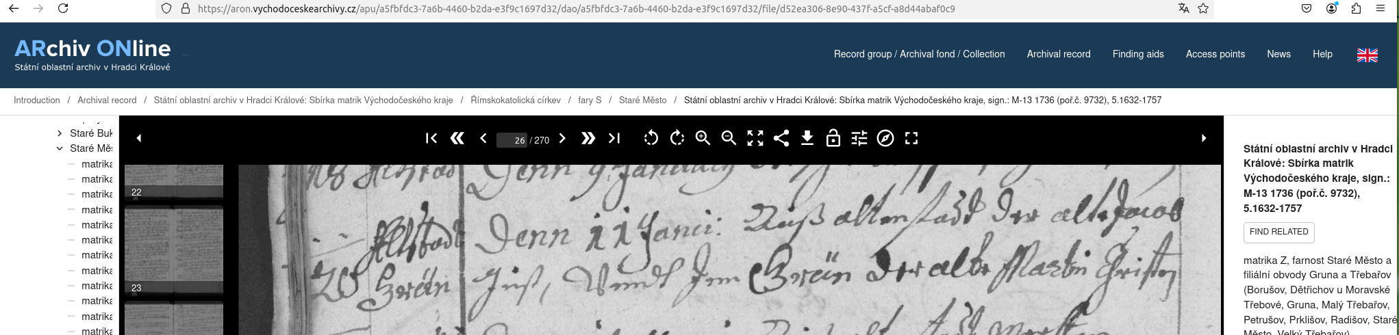 Web: Online Matrikel Tschechien Archiv Online ARON Státí oblastní archiv v Hradci Králové