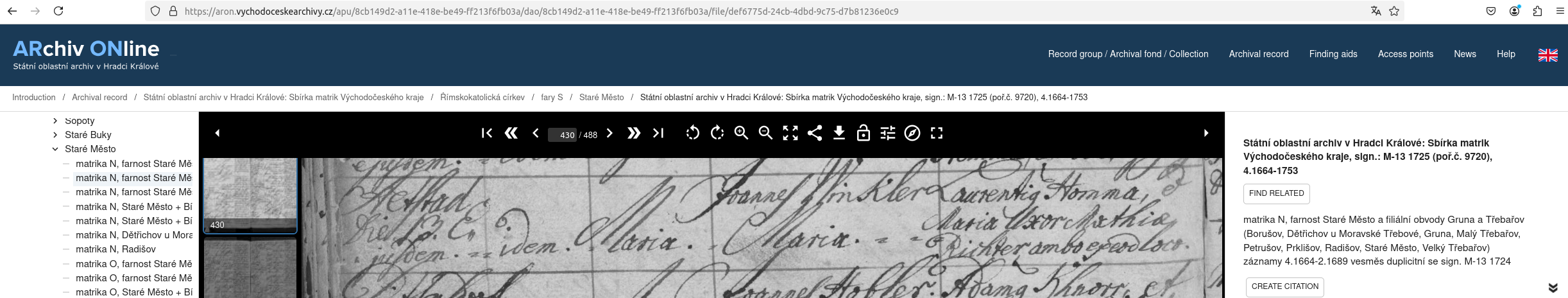 Web: Online Matrikel Tschechien Archiv Online ARON Státí oblastní archiv v Hradci Králové