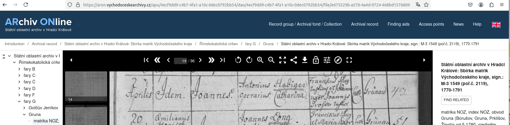 Web: Online Matrikel Tschechien Archiv Online ARON Státí oblastní archiv v Hradci Králové