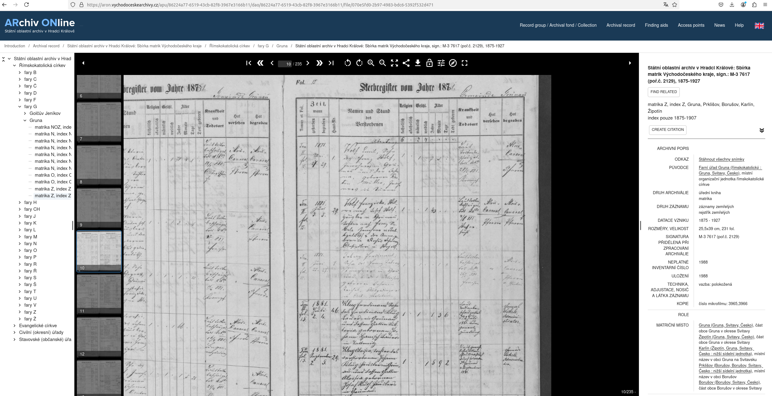 Web: Online Matrikel Tschechien Archiv Online ARON Státí oblastní archiv v Hradci Králové