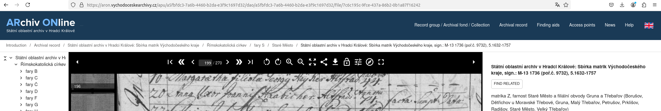 Web: Online Matrikel Tschechien Archiv Online ARON Státí oblastní archiv v Hradci Králové