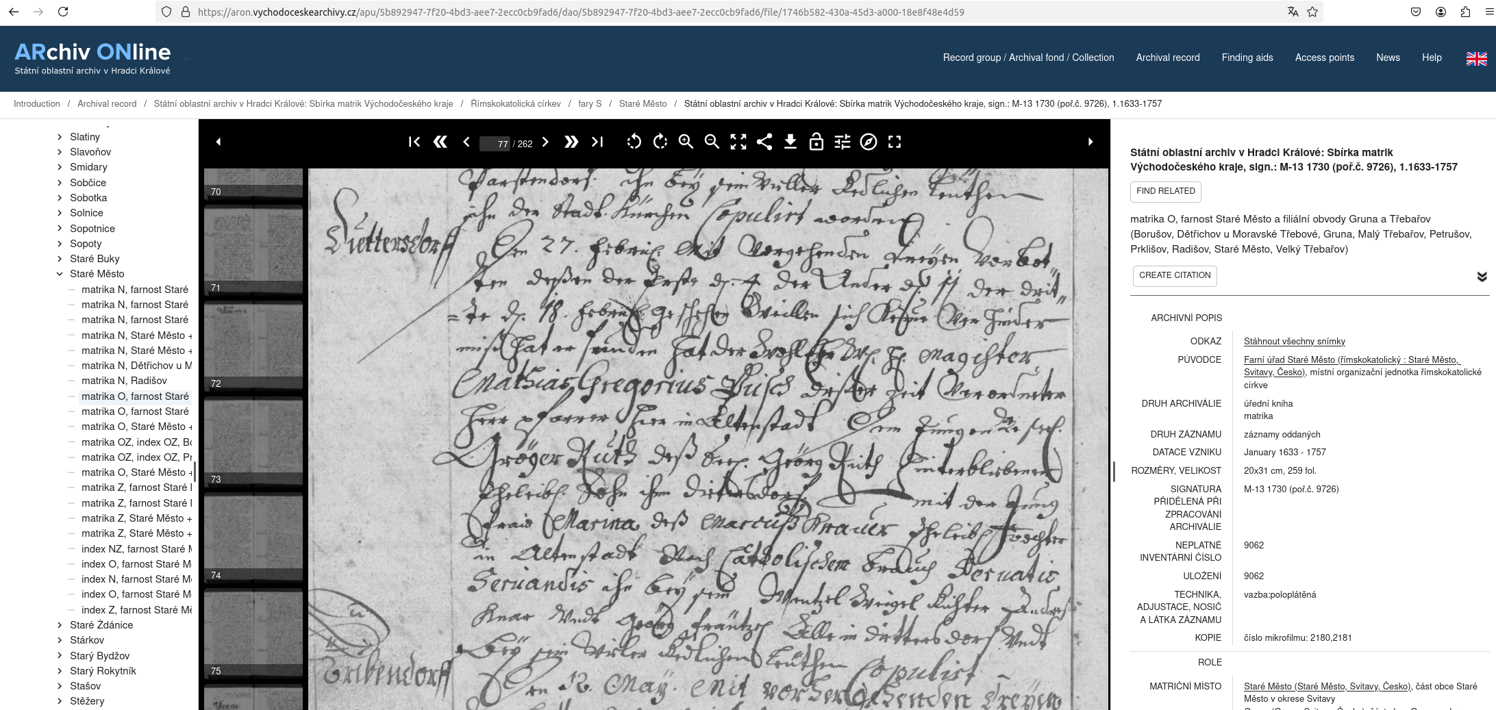 Web: Online Matrikel Tschechien Archiv Online ARON Státí oblastní archiv v Hradci Králové