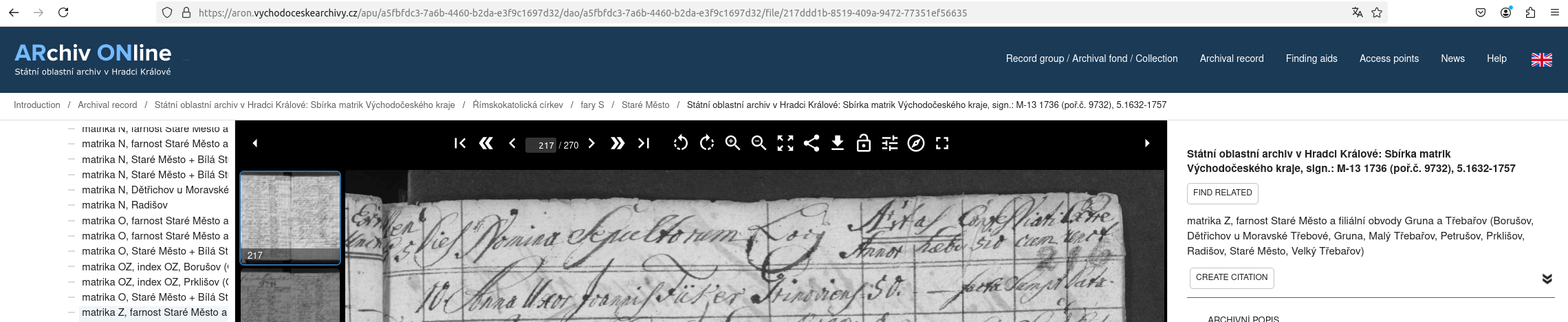 Web: Online Matrikel Tschechien Archiv Online ARON Státí oblastní archiv v Hradci Králové