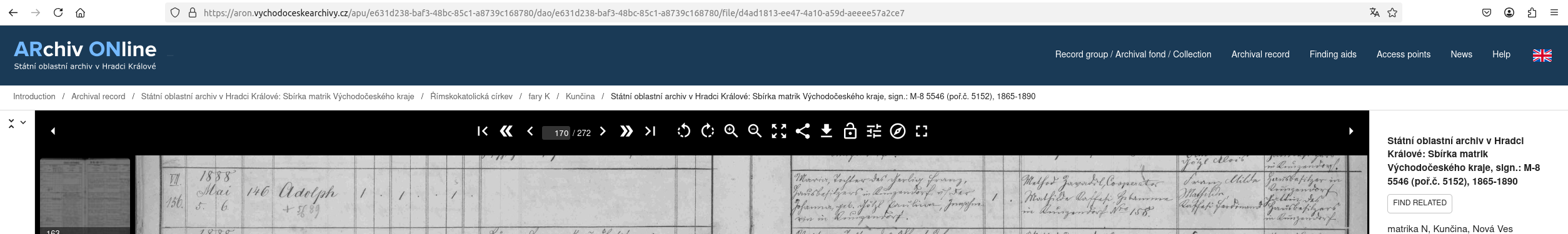 Web: Online Matrikel Tschechien Archiv Online ARON Státí oblastní archiv v Hradci Králové