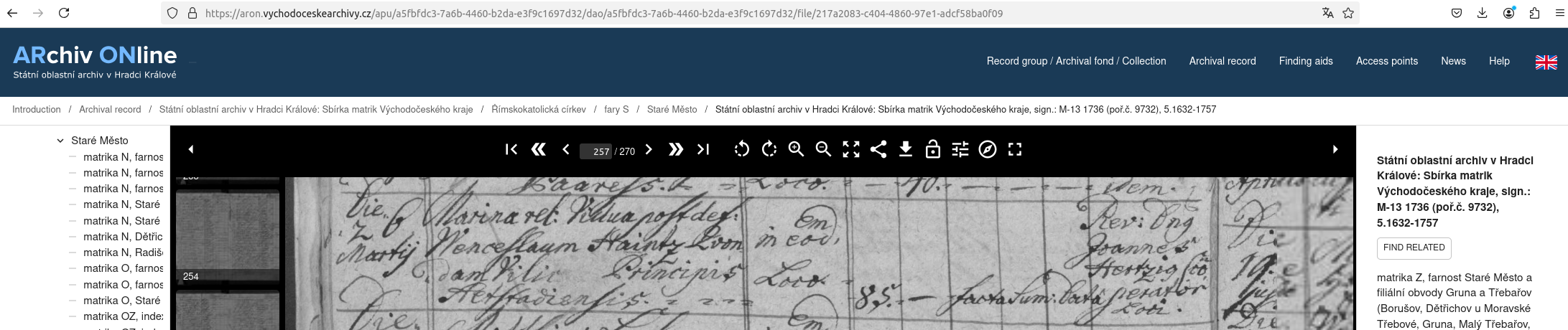 Web: Online Matrikel Tschechien Archiv Online ARON Státí oblastní archiv v Hradci Králové