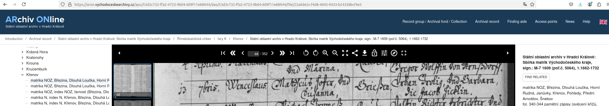 Web: Online Matrikel Tschechien Archiv Online ARON Státí oblastní archiv v Hradci Králové