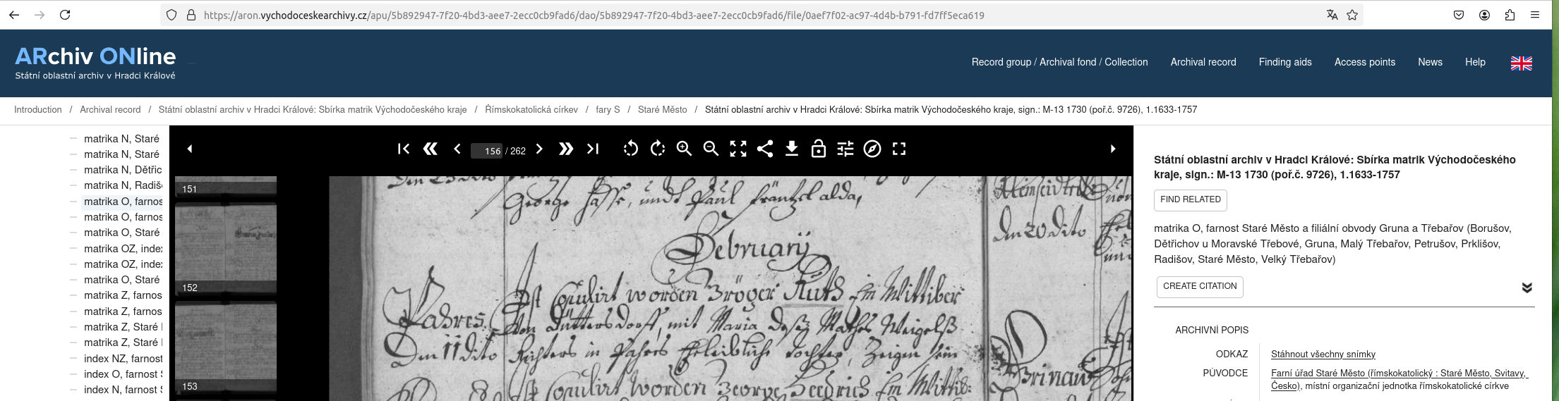 Web: Online Matrikel Tschechien Archiv Online ARON Státí oblastní archiv v Hradci Králové