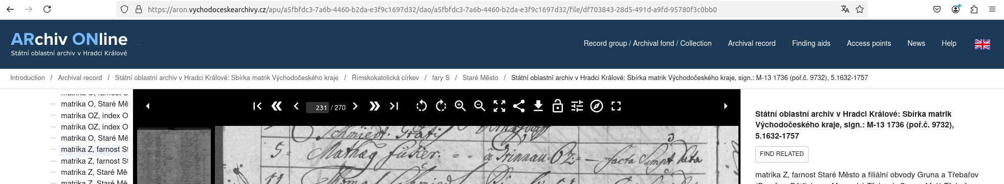 Web: Online Matrikel Tschechien Archiv Online ARON Státí oblastní archiv v Hradci Králové