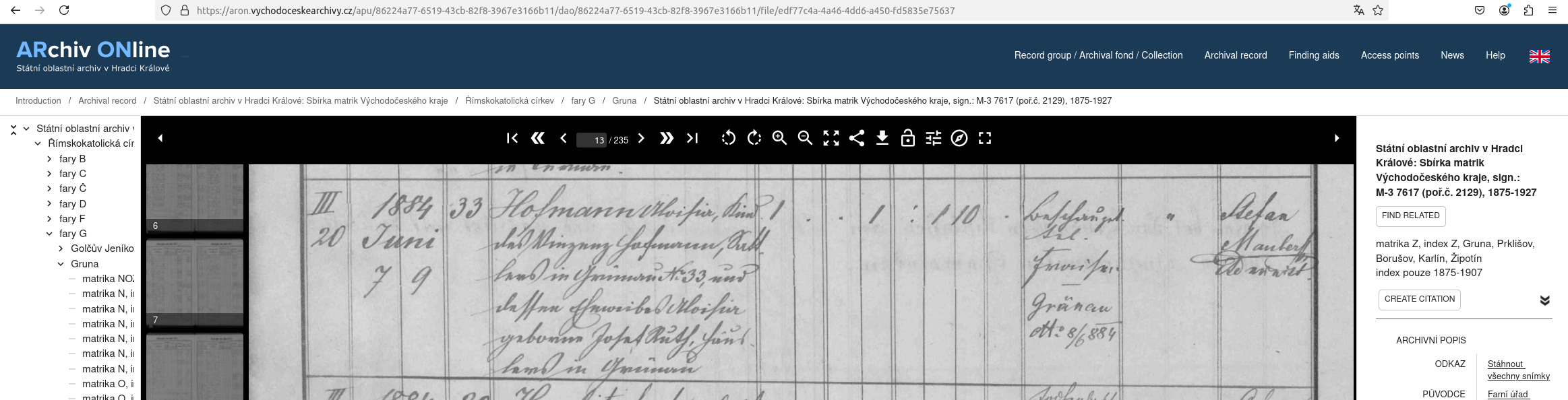 Web: Online Matrikel Tschechien Archiv Online ARON Státí oblastní archiv v Hradci Králové