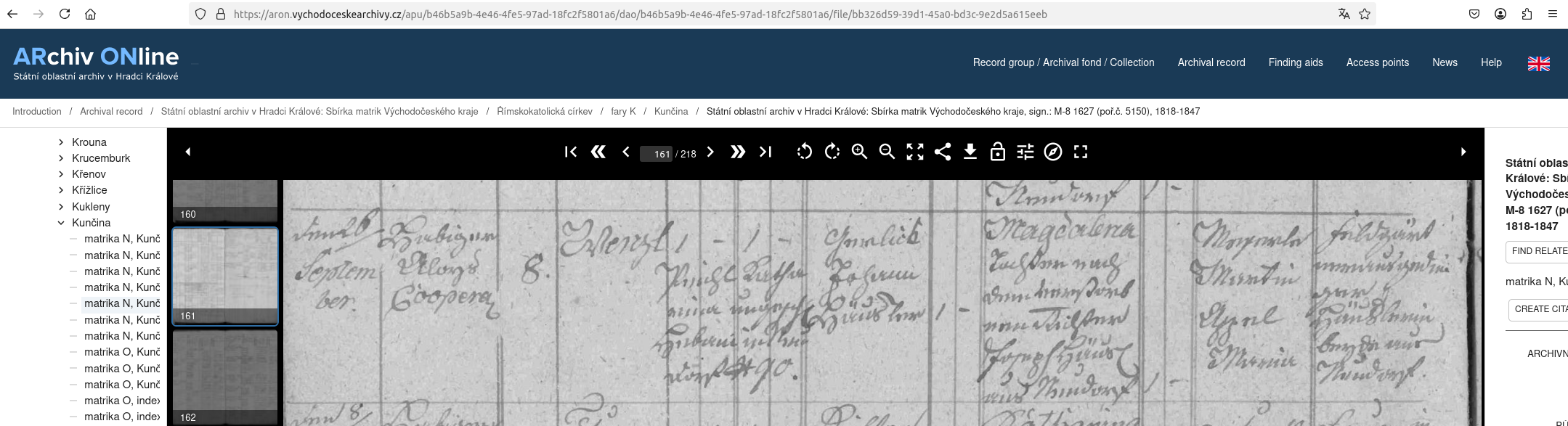 Web: Online Matrikel Tschechien Archiv Online ARON Státí oblastní archiv v Hradci Králové