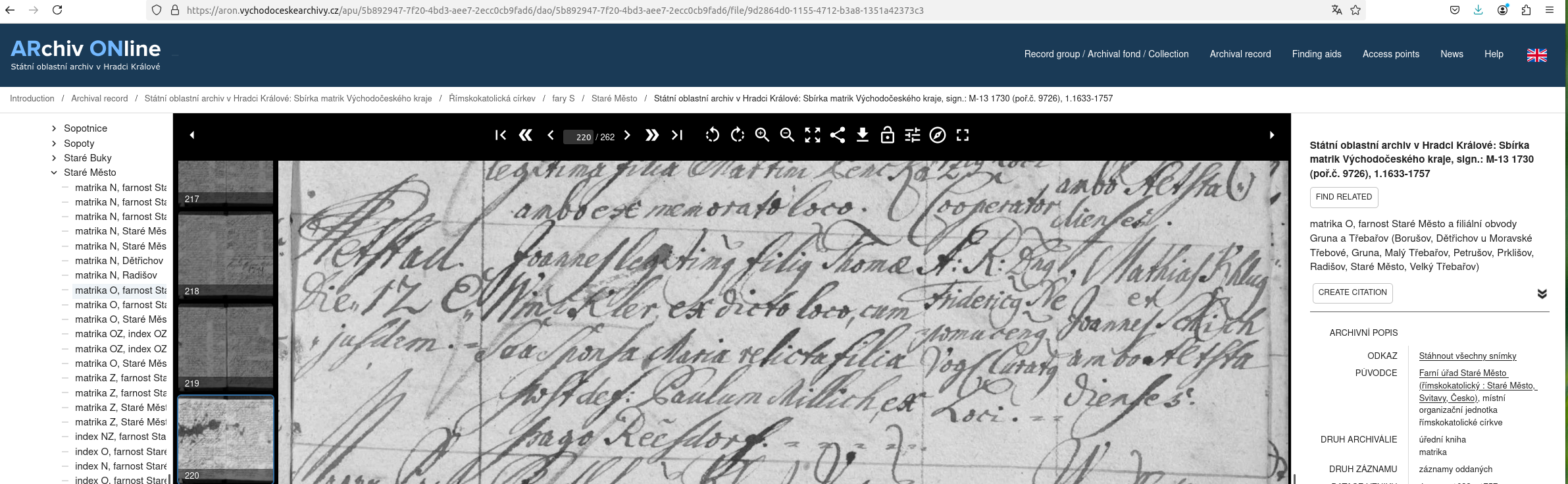 Web: Online Matrikel Tschechien Archiv Online ARON Státí oblastní archiv v Hradci Králové