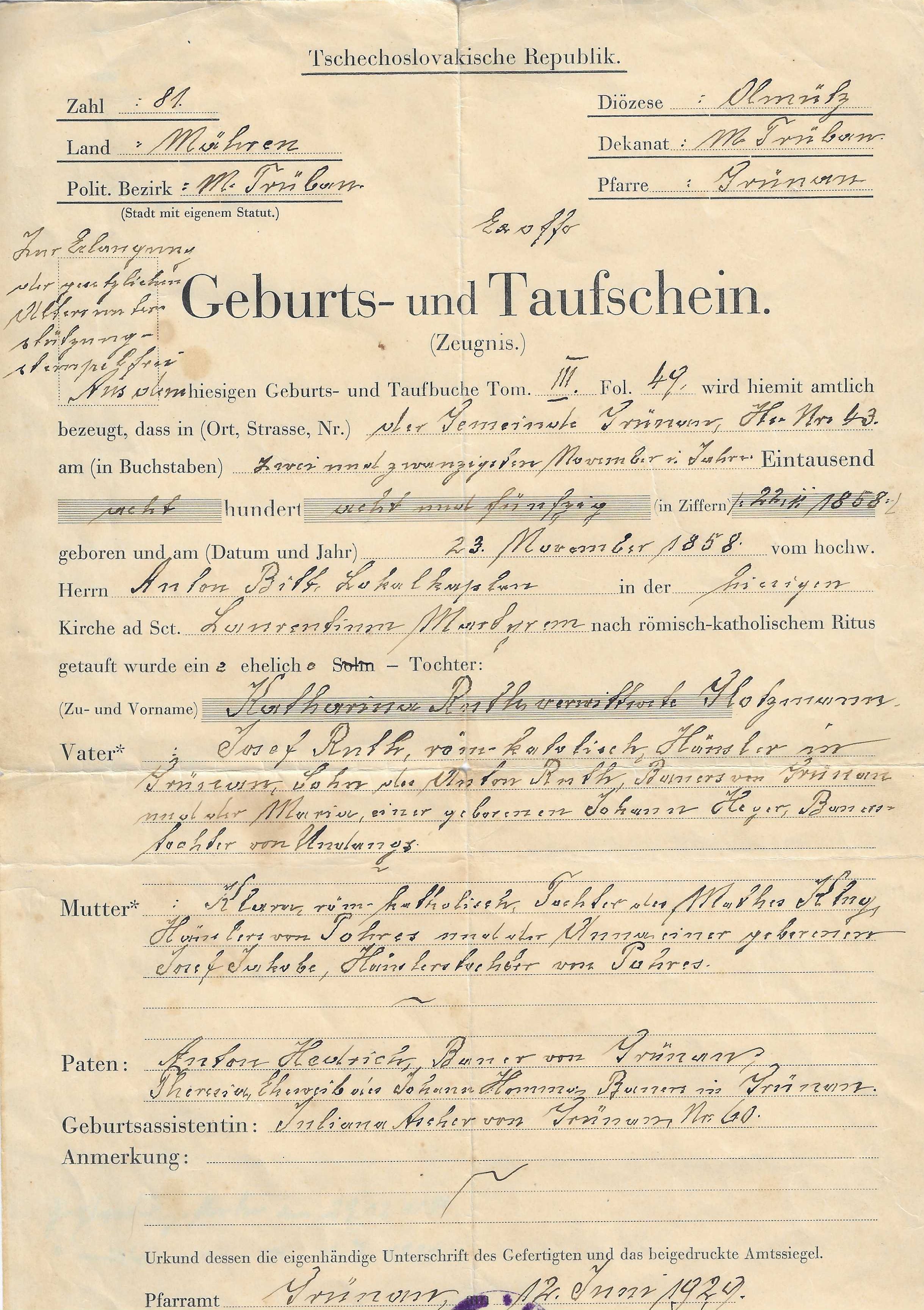 1858-11-22 Geburts und Taufschein Katharina Ruth 1ov2