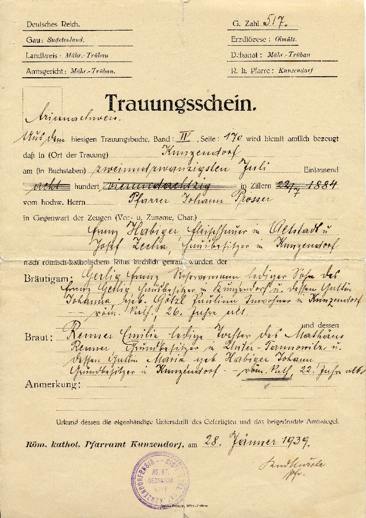Trauschein Urgroßeltern