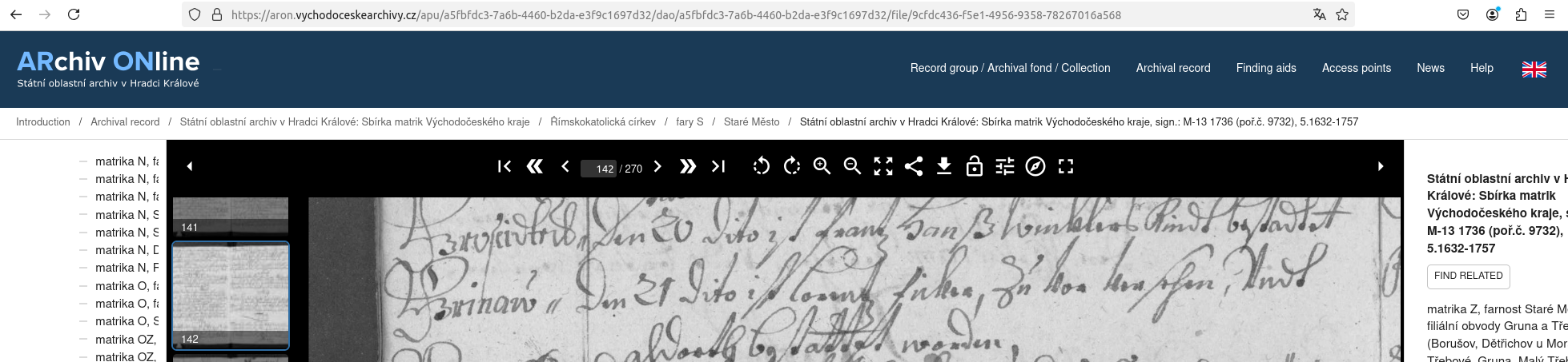 Web: Online Matrikel Tschechien Archiv Online ARON Státí oblastní archiv v Hradci Králové