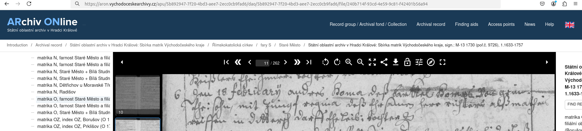 Web: Online Matrikel Tschechien Archiv Online ARON Státí oblastní archiv v Hradci Králové