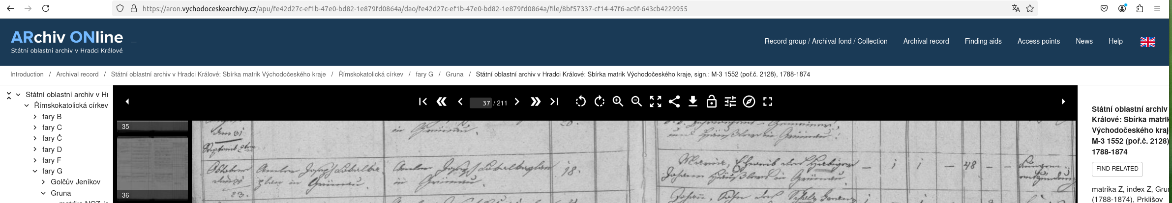 Web: Online Matrikel Tschechien Archiv Online ARON Státí oblastní archiv v Hradci Králové