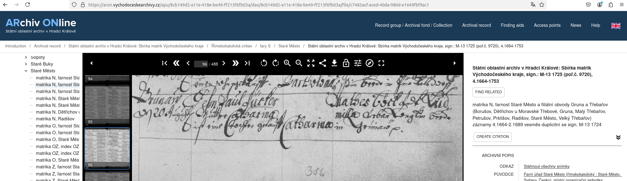 Web: Online Matrikel Tschechien Archiv Online ARON Státí oblastní archiv v Hradci Králové