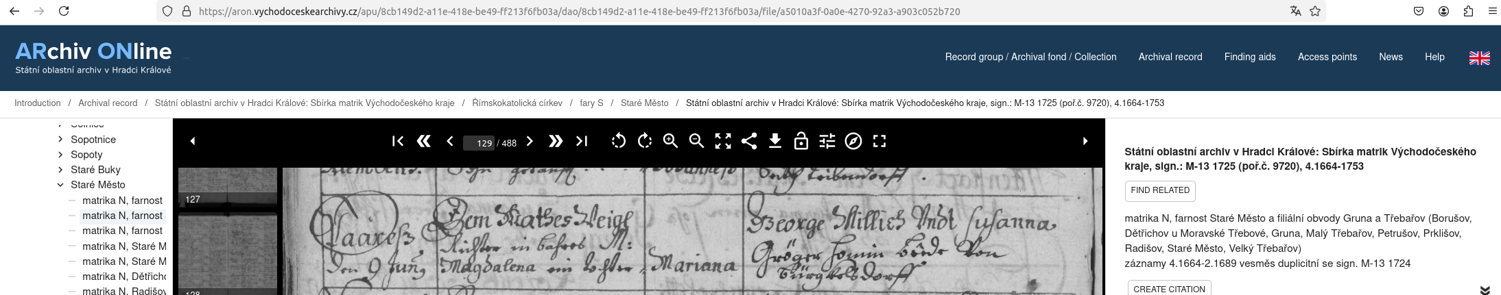 Web: Online Matrikel Tschechien Archiv Online ARON Státí oblastní archiv v Hradci Králové