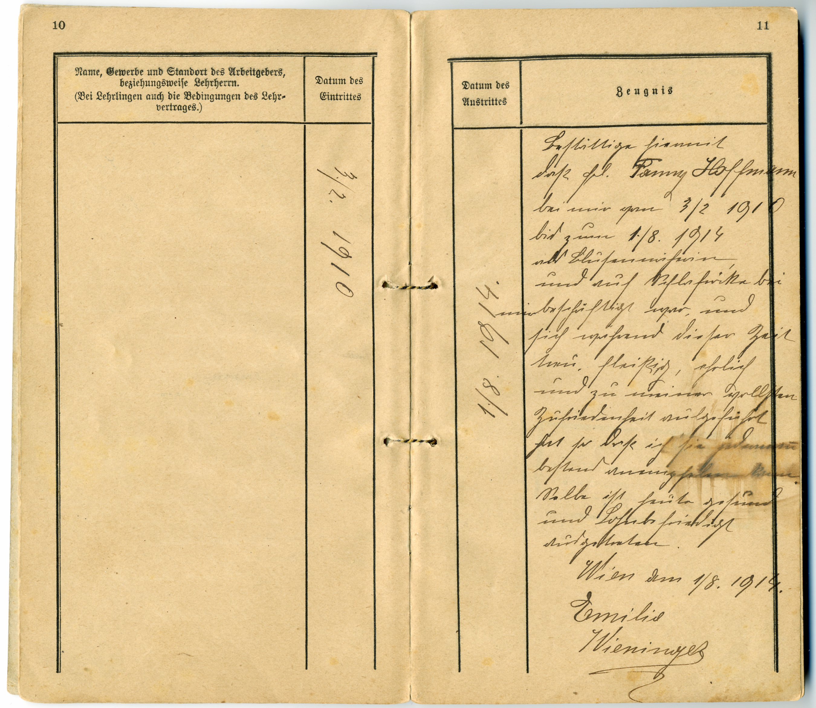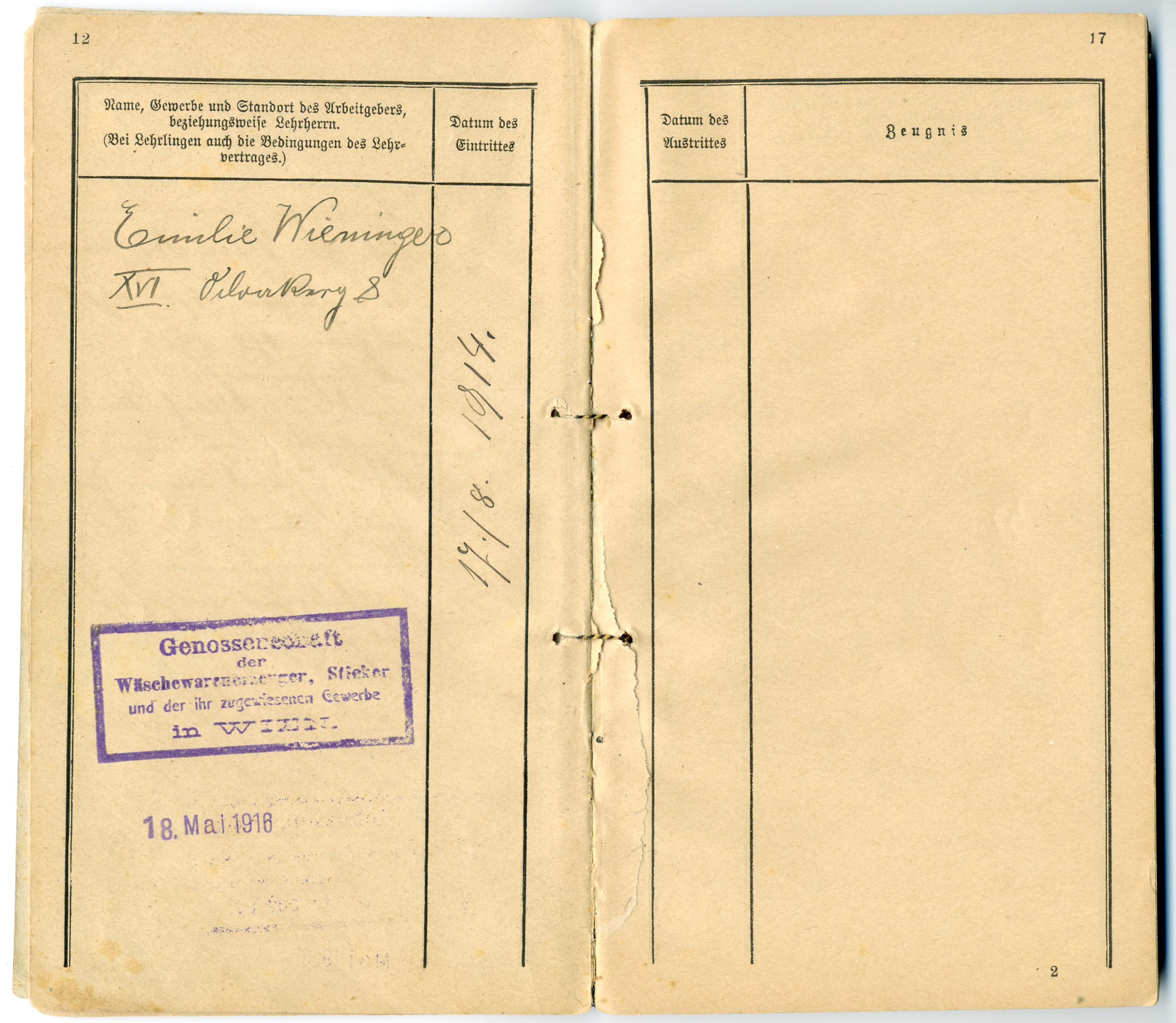 | Beschreibung | Beschäftigt als Schisennäherin bei Emilie Wieninger in Wien 16 (Ottakringerstr. 8) |