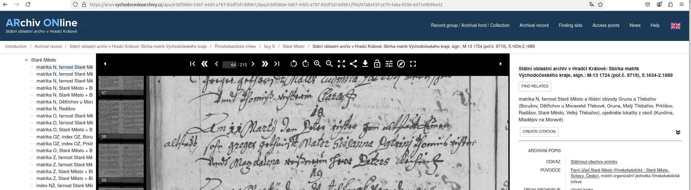 Web: Online Matrikel Tschechien Archiv Online ARON Státí oblastní archiv v Hradci Králové