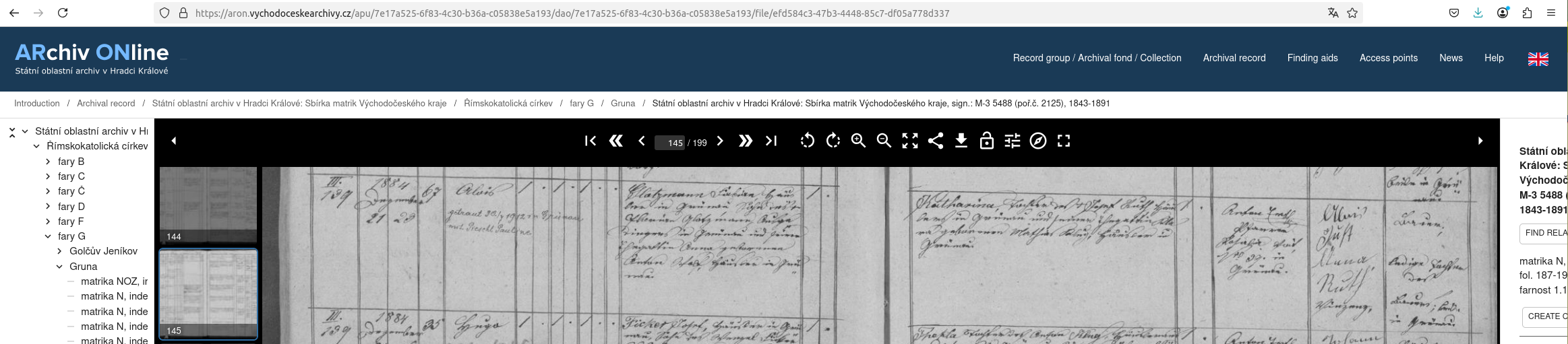 Web: Online Matrikel Tschechien Archiv Online ARON Státí oblastní archiv v Hradci Králové