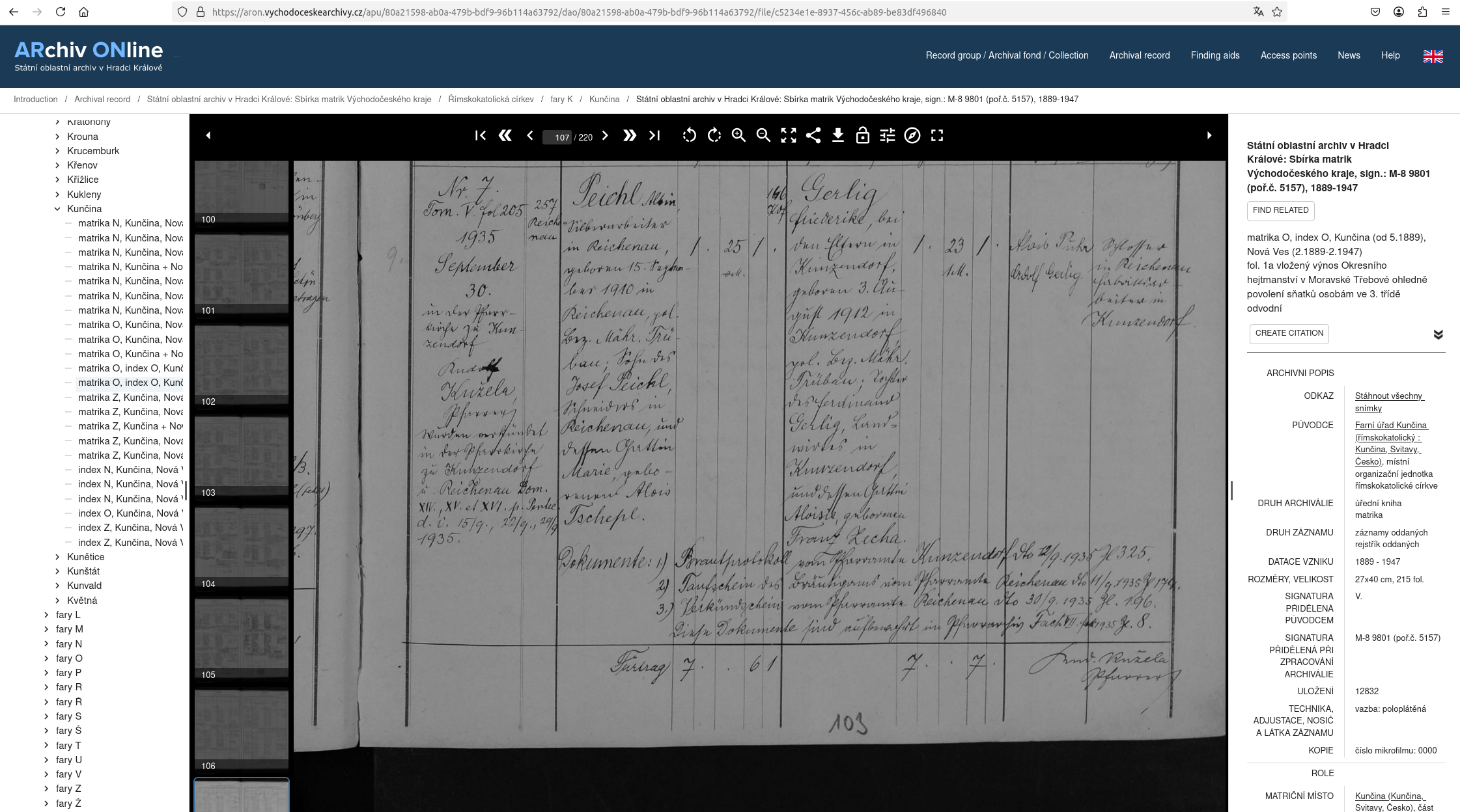 Web: Online Matrikel Tschechien Archiv Online ARON Státí oblastní archiv v Hradci Králové