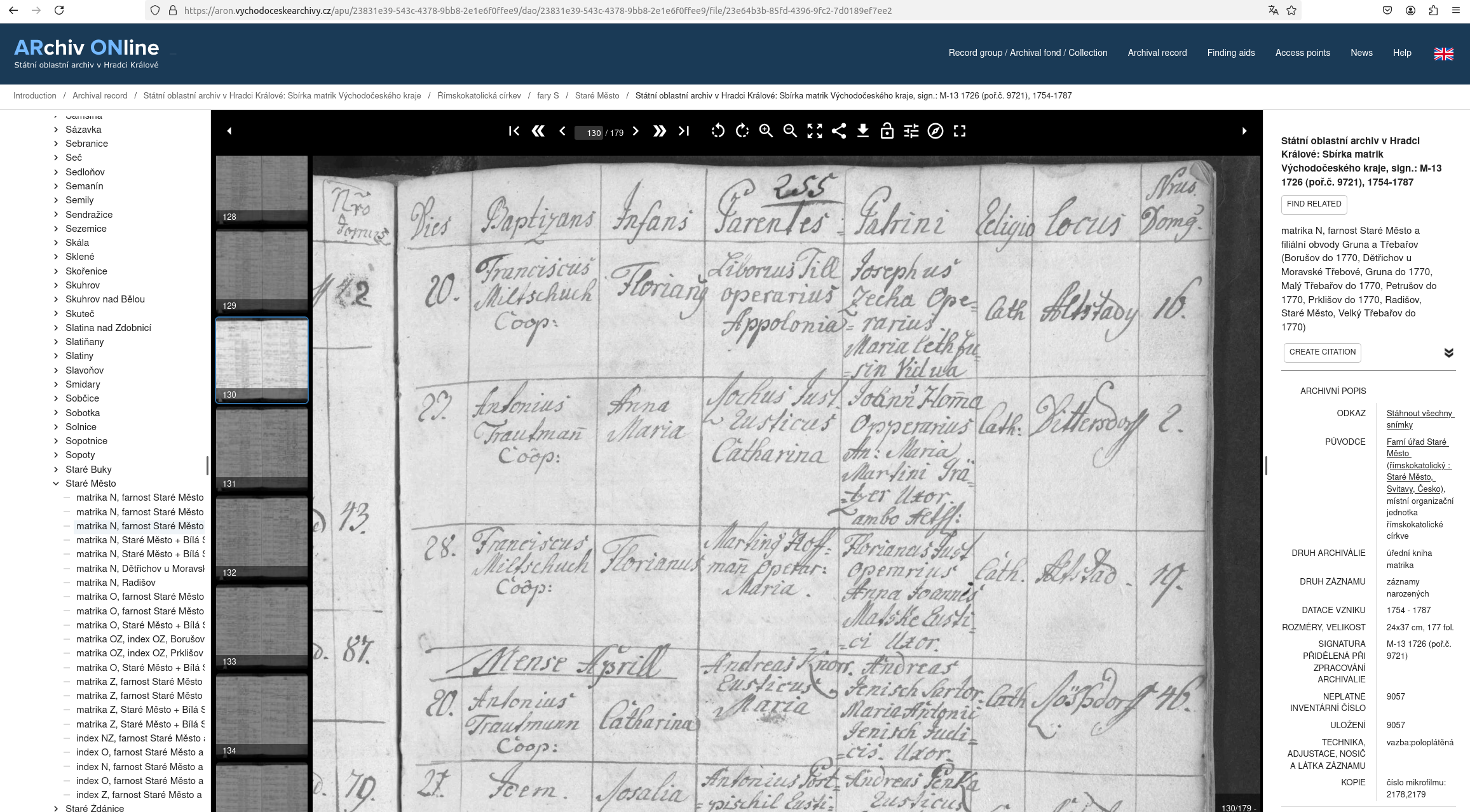 Web: Online Matrikel Tschechien Archiv Online ARON Státí oblastní archiv v Hradci Králové
