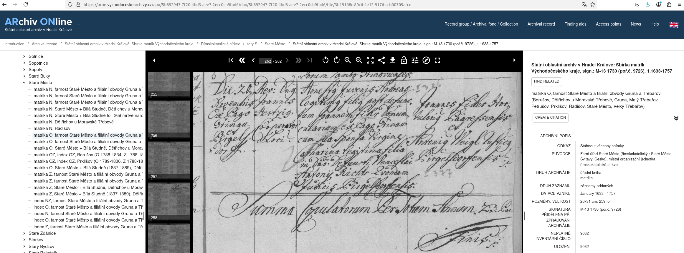 Web: Online Matrikel Tschechien Archiv Online ARON Státí oblastní archiv v Hradci Králové