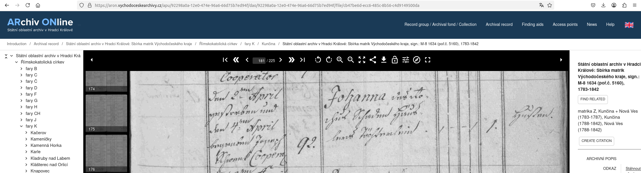Web: Online Matrikel Tschechien Archiv Online ARON Státí oblastní archiv v Hradci Králové