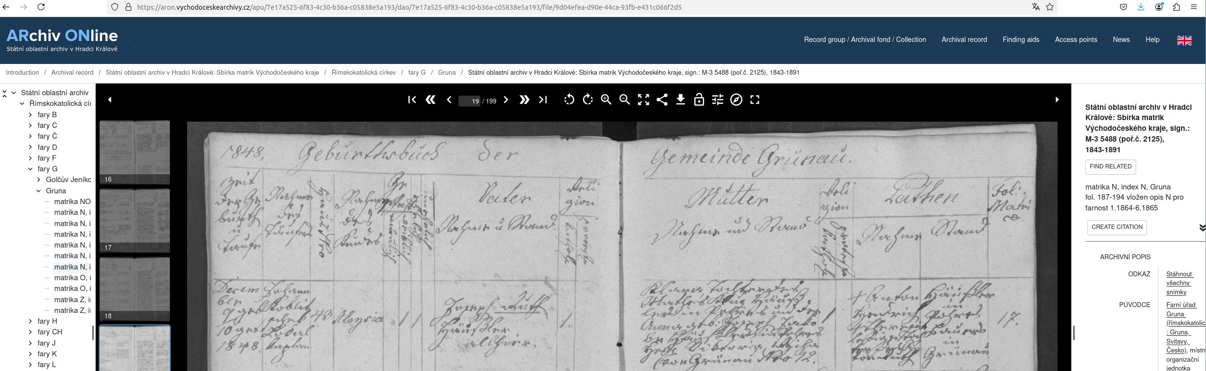 Web: Online Matrikel Tschechien Archiv Online ARON Státí oblastní archiv v Hradci Králové